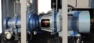 Прямой привод через гибкую муфту компрессора надежная конструкция без потерь производительности с длительным сроком эксплуатации. Нет потерь КПД со временем, не требуется замена и обслуживание. Трехфазный электрический двигатель в пыле и влагозащищенном корпусе уровня IP55, класса IE3.