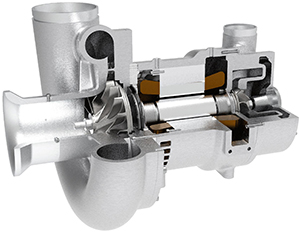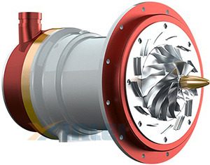 Воздух всасывается в центр вращающейся крыльчатки с радиальными лопастями и под действием центробежных сил выталкивается по направлению к периметру крыльчатки. Радиальное перемещение воздушных потоков приводит к росту давления и выработке кинетической энергии. Перед поступлением в центр крыльчатки следующей ступени компрессора воздух проходит через диффузор и спираль, где кинетическая энергия преобразуется в давление.