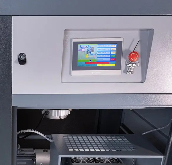 Компрессоры комплектуются интуитивно понятным контроллером. Позволяет автоматически отключать электродвигатель при отсутствии необходимости в его работе, а также задавать требуемые параметры непосредственно с панели управления. Показывает текущие параметры работы компрессора. Вовремя оповещает о предстоящем техническом обслуживании.